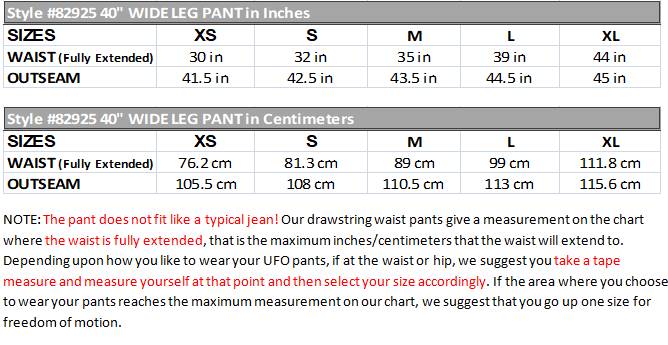 UFO reinvents a classic style with the UFO 40” Wide Leg Pant. The baggy cut is unisex and allows for easy movement for hours, making this the signature EDM rave wear style that can be adapted to fit any casual, every day street wear, or Y2K inspired wardrobe. This pant features two top button flap pockets, two extra large side cargo pockets with eye-catching pleat detail and UFO’s signature twill tapes, and a single button back pocket, giving you plenty of storage space. The bottom of the wide leg features loop and gusset details on the front and back of both legs, perfect for storing glow sticks while dancing. Drawstrings at the waist and bottom of the pant give a comfortable fit. In our popular UFO wind fabric of 65% Cotton and 35% Poly, this pant is machine washable.
